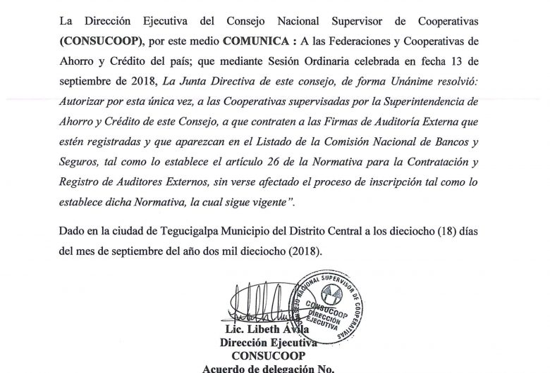 Los representantes del Consejo Nacional Supervisor de Cooperativas (CONSUCOOP) y del Banco Central de Honduras (BCH), Licenciado Fredy Espinoza Mondragón, Director Ejecutivo y Licenciado Wilfredo Cerrato Rodríguez, Presidente, respectivamente; firmaron un convenio interinstitucional de cooperación, el cual tiene como...