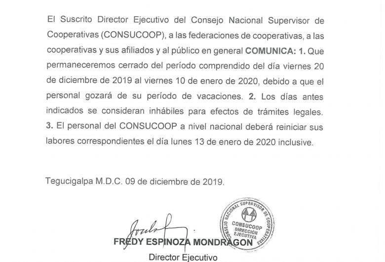 Posted on diciembre 10, 2019 / / Victor Josue Portillo Tabora COMUNICADO Comunicados Leer Noticia Completa...