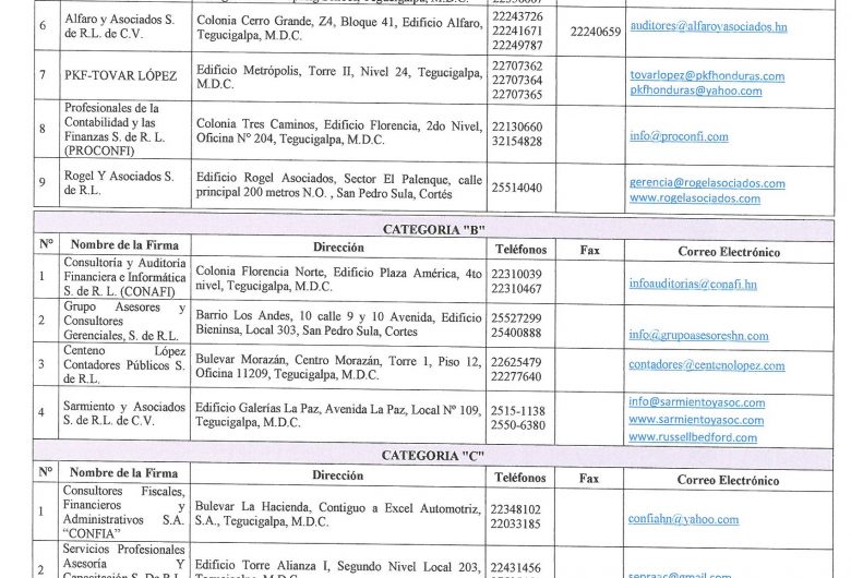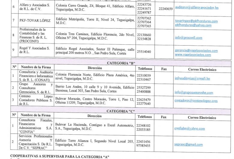 Posted on enero 24, 2020 / / Victor Josue Portillo Tabora LISTA DE FIRMAS DE AUDITORIA EXTERNA, INSCRITAS EN EL REGISTRO DE AUDITORES EXTERNOS DE COOPERATIVAS (RAEC) Al 23 DE ENERO DE 2020. RAEC Leer Noticia Completa...